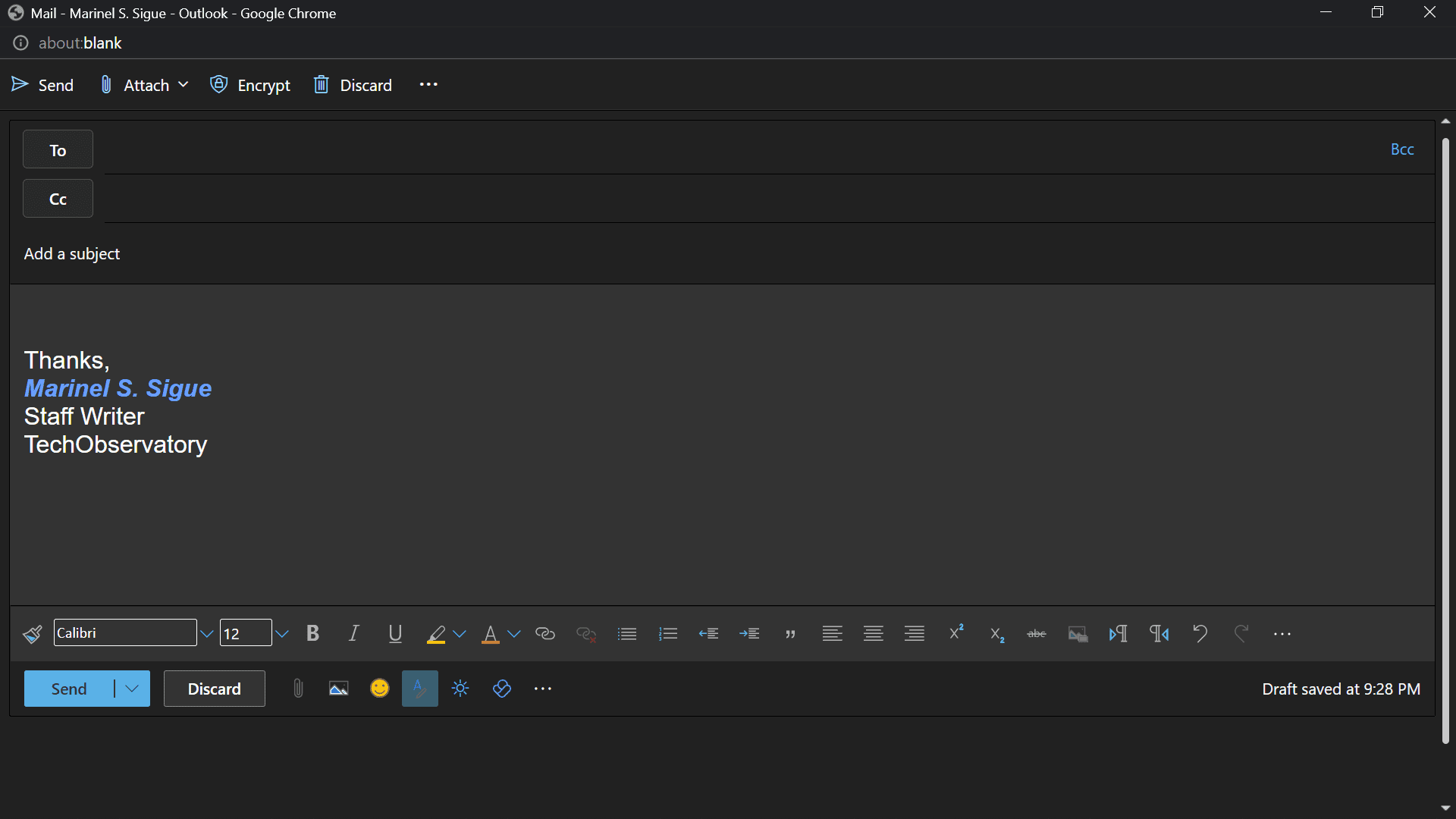 If you don’t want to add your signature to every outgoing email automatically, you can insert it to specific emails manually.